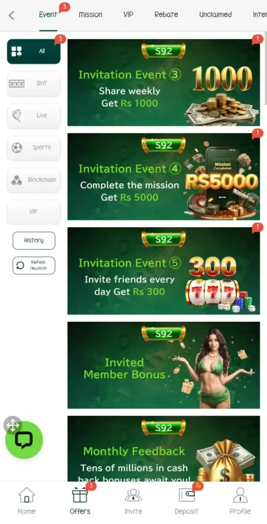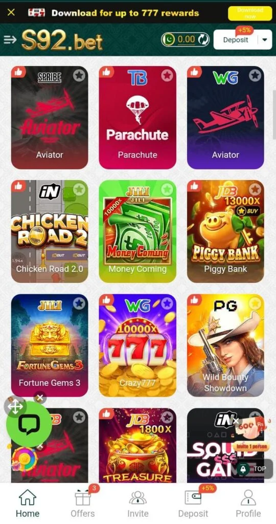 S92 ensures that all payments and withdrawals are quick and safe, giving users full confidence. - Multiple Game Options: